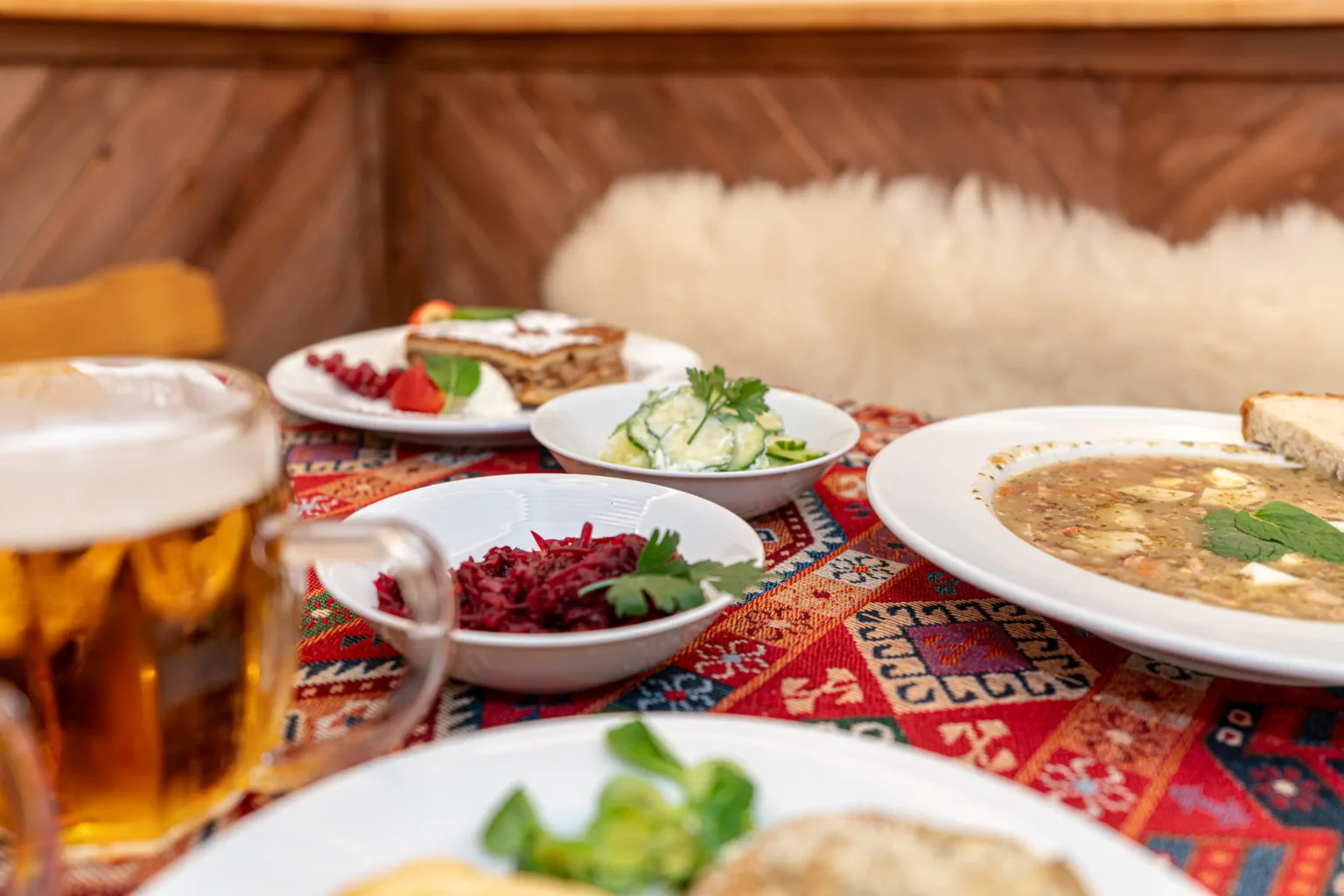 W naszym menu znajdziesz klasyczne pozycje, oparte na tradycyjnych recepturach podhalańskiej kuchni. Skosztujesz oscypka z żurawiną, kwaśnicy lub pierogów.